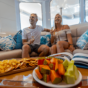 Enjoy a glass of wine and nibbles as you cruise back to Cairns, celebrating a great day on the reef
