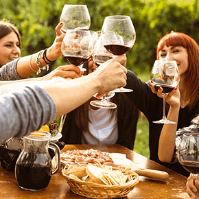- Glass of wine, cheese, fruit platter and live music on return journey